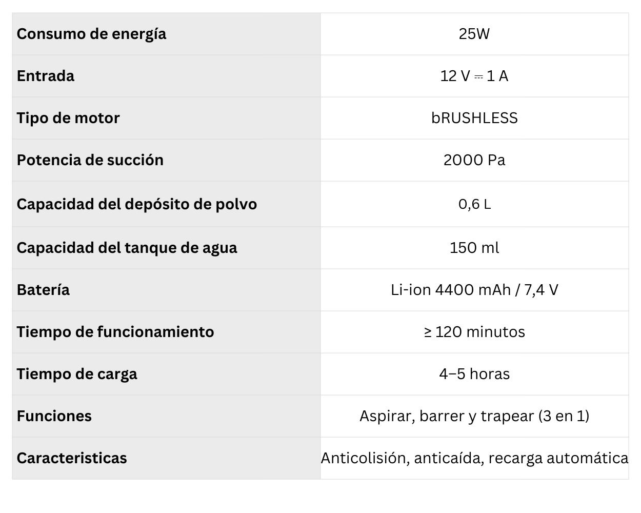 Robot aspirador 3 en 1 que aspira, barre y trapea en una sola pasada. Cuenta con motor brushless, potente succión de 2000 Pa y hasta 120 minutos de autonomía. Incluye limpieza automática, de bordes y puntual, con sensores anticolisión y anticaída, y recarga automática para una limpieza inteligente y sin esfuerzo.