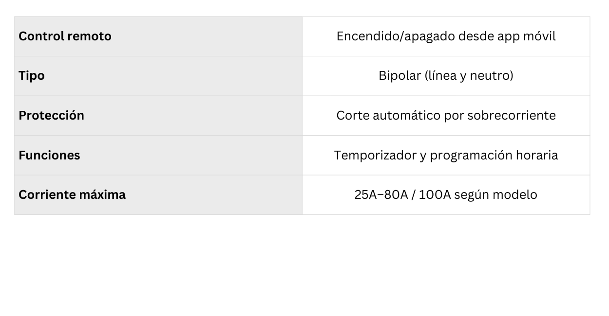 El interruptor automático inteligente WiFi permite controlar el suministro eléctrico de forma remota desde tu celular en cualquier momento y lugar. Compatible con Amazon Alexa y Google Home, ofrece automatización, programación horaria y protección eléctrica avanzada, ya que corta la energía automáticamente cuando la corriente supera el valor máximo permitido. Ideal para mejorar la seguridad, el control energético y la domótica del hogar.